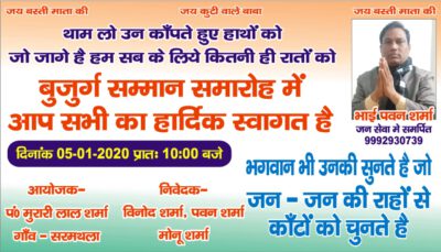 सोहना(विनोद वैष्णव )| समाजसेवी पवन शर्मा ने आज मुरारीलाल कृषि फार्म गांव सरमथला में 350 बुजुर्गो को कम्बल ओढ़ा कर…