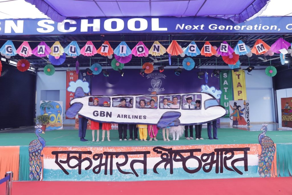 फरीदाबाद (विनोद वैष्णव) : जी.बी.एन. विद्यालय, 21 डी में “एक भारत श्रेष्ठ भारत” विषय पर दीक्षांत समारोह एवं वार्षिक उत्सव का भव्य एवं गरिमामय आयोजन किया गया। कार्यक्रम का आयोजन विद्यालय की निदेशिका अनीता सूद , विद्यालय की सम्मानित प्रधानाचार्या डॉ निशा शर्मा तथा सृजनात्मक योजनाकार कनिका सूद मुखर्जी के मार्गदर्शन में संपन्न हुआ। कार्यक्रम का शुभारंभ दीप प्रज्वलन के साथ किया गया। इसके पश्चात विद्यालय के विद्यार्थियों ने विविधता में एकता को दर्शाते हुए ‘एक भारत श्रेष्ठ भारत’ पहल के तहत देश के विभिन्न राज्यों की लोक कलाओं, नृत्यों और संगीत की शानदार प्रस्तुतियां देकर दर्शकों को मंत्रमुग्ध कर दिया।