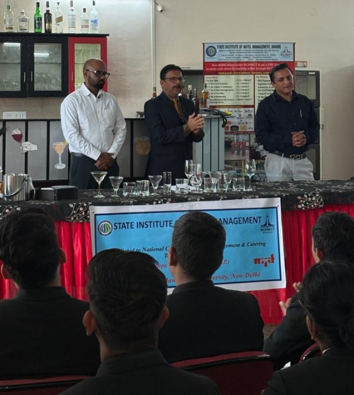 इंदौर (विनोद वैष्णव) : स्टेट इंस्टिट्यूट ऑफ होटल मैनेजमेंट (SIHM), इंदौर में एक विशेष Live Cocktail Demonstration का आयोजन किया गया, जिसमें विद्यार्थियों को Cocktail Making और Professional Bartending का व्यावहारिक प्रशिक्षण दिया गया।