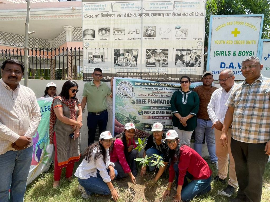 फरीदाबाद (पिंकी जोशी) : डी.ए.वी. शताब्दी महाविद्यालय, फरीदाबाद की युथ रेड क्रॉस यूनिट तथा पर्यावरण विभाग द्वारा जिला रेड क्रॉस सोसाइटी, फरीदाबाद के सौजन्य से “विश्व पृथ्वी दिवस” के अवसर पर एक प्रभावशाली एवं प्रेरणादायी वृक्षारोपण अभियान का आयोजन किया गया। कार्यक्रम का उद्देश्य विद्यार्थियों एवं समाज में पर्यावरण संरक्षण के प्रति जागरूकता उत्पन्न करना तथा हरित भविष्य के निर्माण के लिए ठोस संकल्प लेना था।